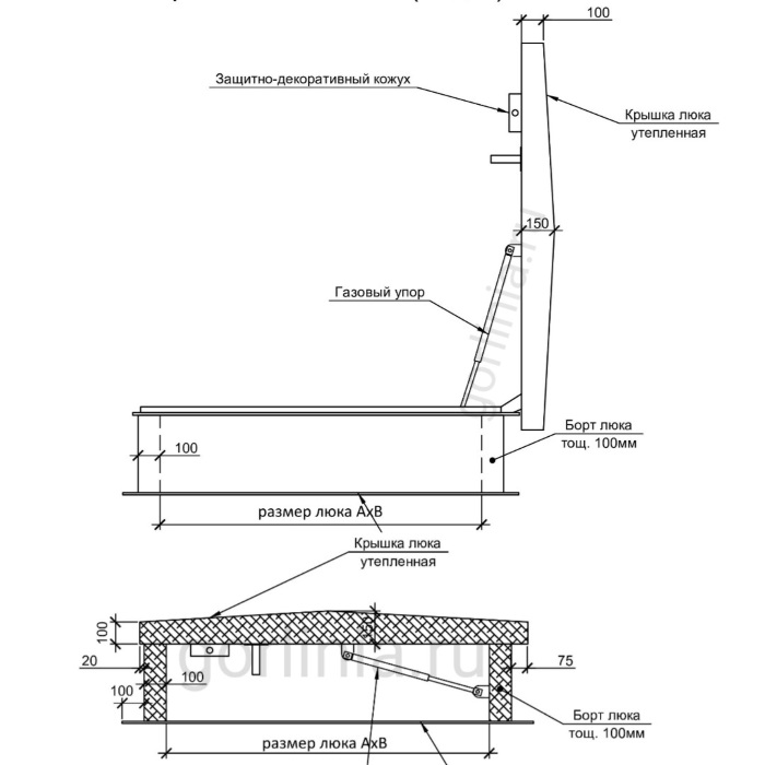 - внутренняя ручка для толкания и притягивания дверцы со стороны лестницы.