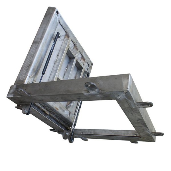 Каркас коробки и створки сварен из стали AISI 304 с толщиной стенки 5/6 мм; в дне корыта лист 5/8 мм (параметр зависит от грузоподъемности), снизу армирован профильной трубой 50х25. Сварка аргонно-дуговая сплошным проваром с присадками для нержавейки.