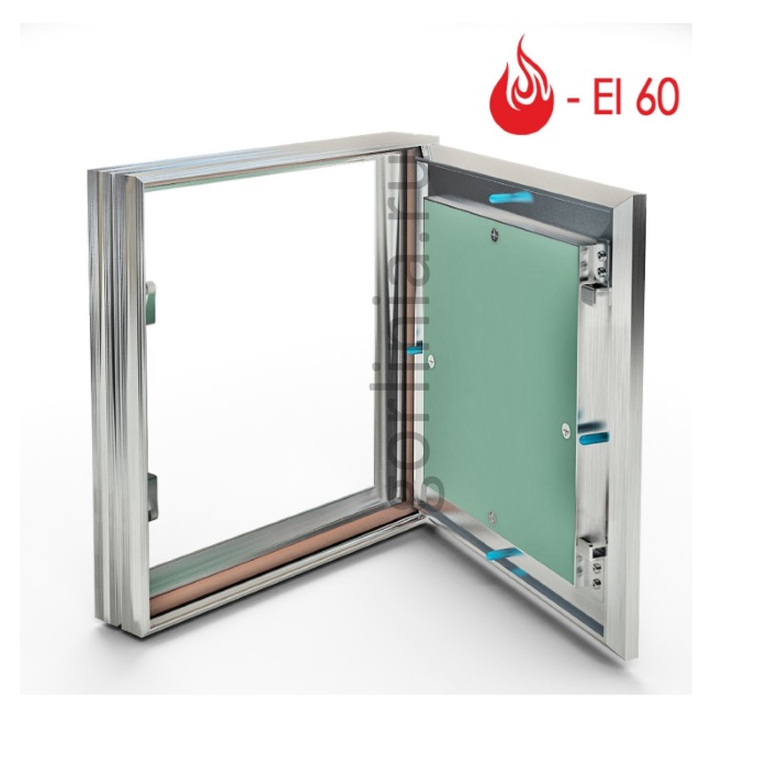 Финишная отделка лицевой части створки: покраска в общий цвет стены или потолка. Механизм открывания на нажимных замках с осевыми скрытыми петлями без внешних элементов фурнитуры.