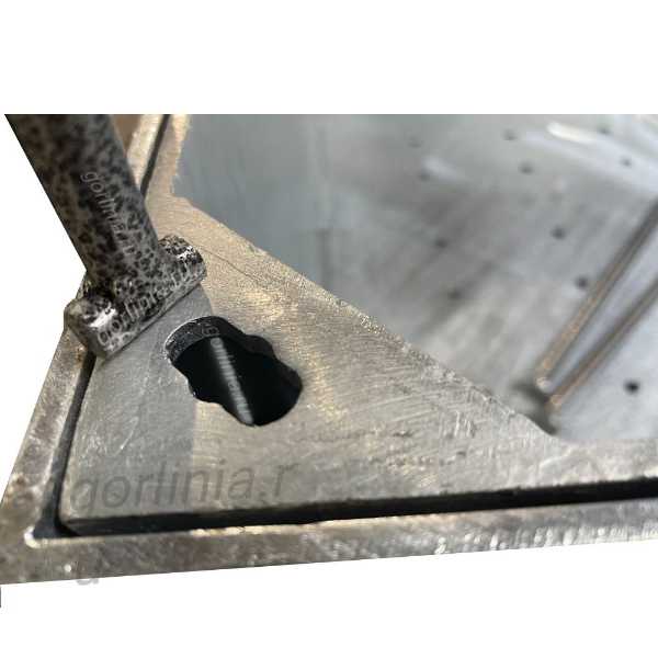 Изделие изготовлено из чернового проката 5мм с покрытием методом горячего цинкования в ваннах с расплавом цинка. Снизу в дне вырезаны дренажные отверстия D10 с шагом 70-100 мм для сходы воды от полива.