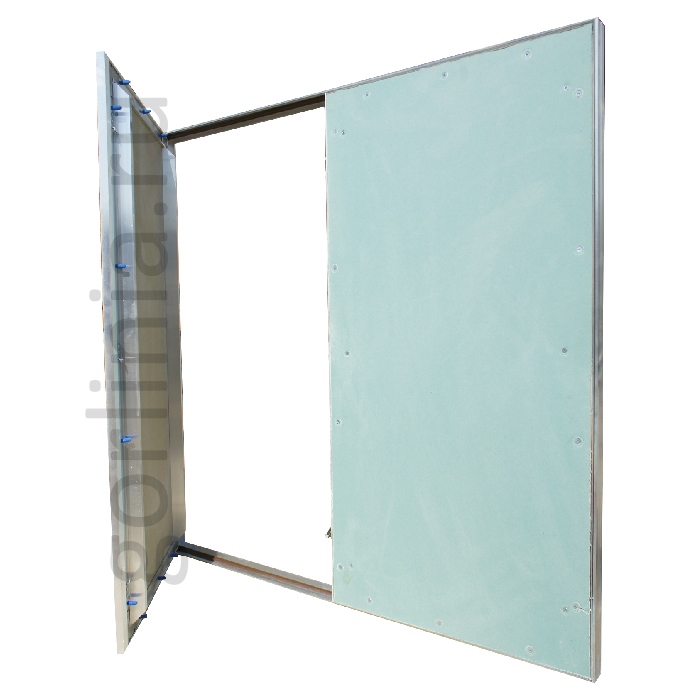 Нажимные створки распахиваются на несъемных петлях с одной осью вращения, дополнительно фиксируется в коробке через съемную перемычку по центру