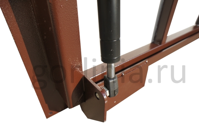 Облегченная модель в заказном размере без щелей в полу с уведенными за ось открывания петлями по длине 700. Легкая ходовая часть и удобная установка. При формировании конфигурации напольного отверстия обратите внимание, что защитные кожухи шарниров выходят за посадочную отметку по плечевой стороне 800.