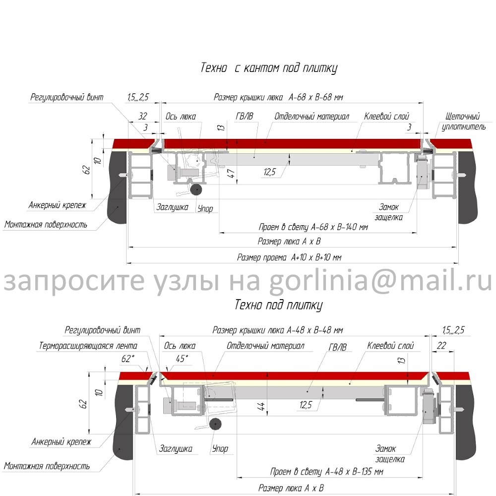 - без внешнего обрамления, когда дверца открывается по швам плитки.
